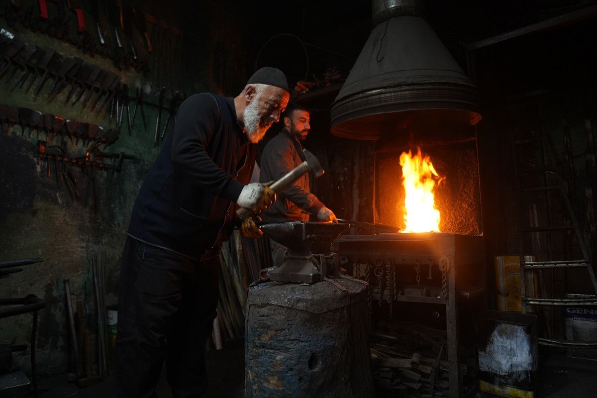 Kentte ata mesleği demircilik zanaatını sürdüren 63 yaşındaki Halit Pınar, yarım asırdır ateşte demir dövüyor.