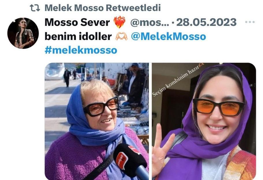 Melek Mosso, CHP belediyelerinin şarkıcısı olarak biliniyor. Ancak, AK Parti’li kadınlara karşı kullandığı dil nedeniyle eleştirilere maruz kalmıştı. Seçim gününde, aynı tarz kıyafet giyerek olay yaratan şarkıcı, tartışmaların odağında kalmaya devam ediyor.